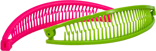 This ingenious accessory was shaped like a banana, with two plastic sides, attached to one end. Both sides had plastic teeth facing each other. The other end was loose with a clip, so you could open the sides from each other, insert the hair, and close the two sides around the hair, with the plastic teeth being inserted into the hair. The open end then was clipped into position. The whole procedure would just take a few seconds.